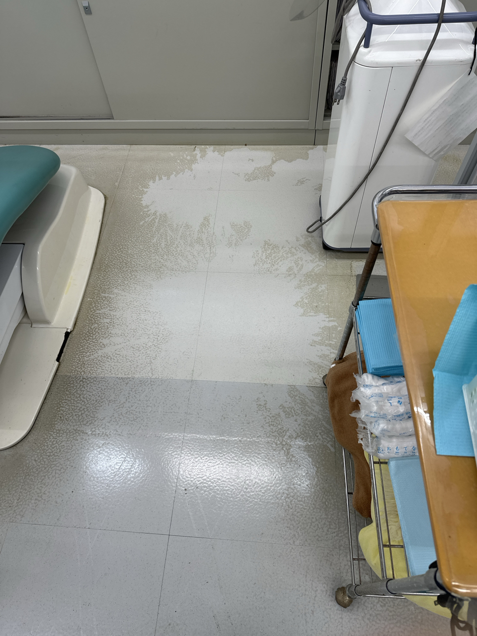 院内床の洗浄・ワックス仕上げ清掃を行いました。