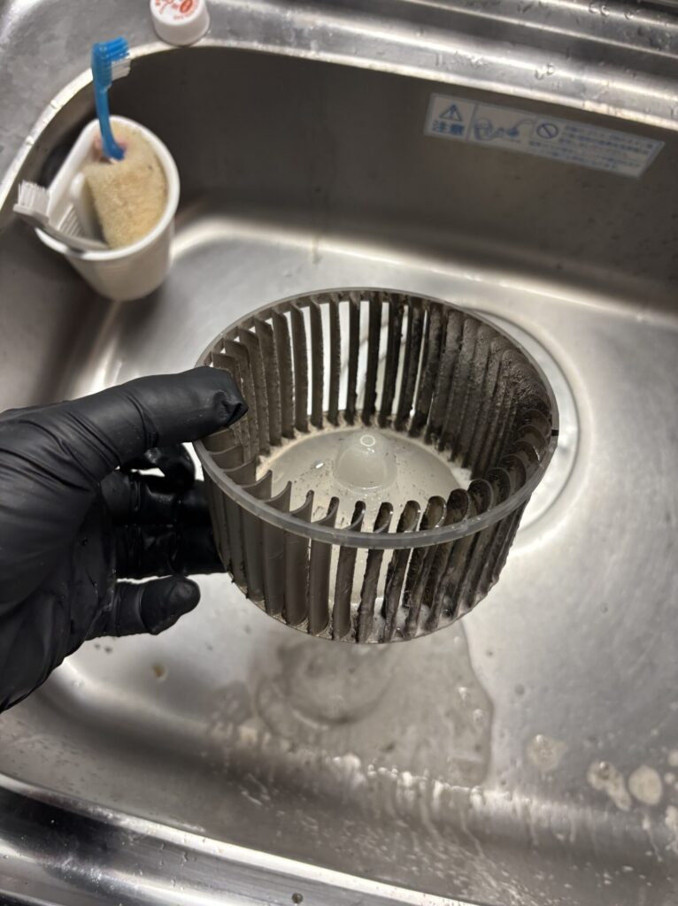 今回も分解して内部のファンまでしっかり洗浄。特に浴室は湿気が多いため、カビの原因になる汚れを徹底的に除去しました。