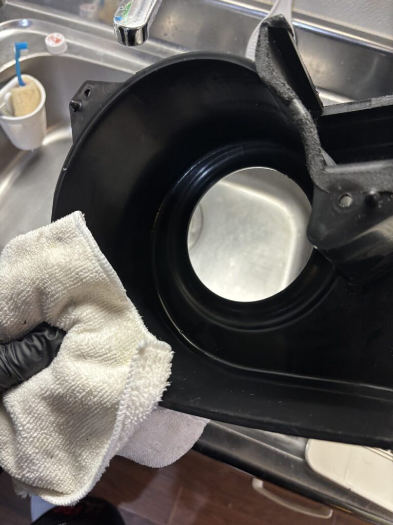 洗浄前は黒い汚水が出てきましたが、作業後は空気の流れもスムーズになり、「風が全然違う!」とお客様も驚かれていました。